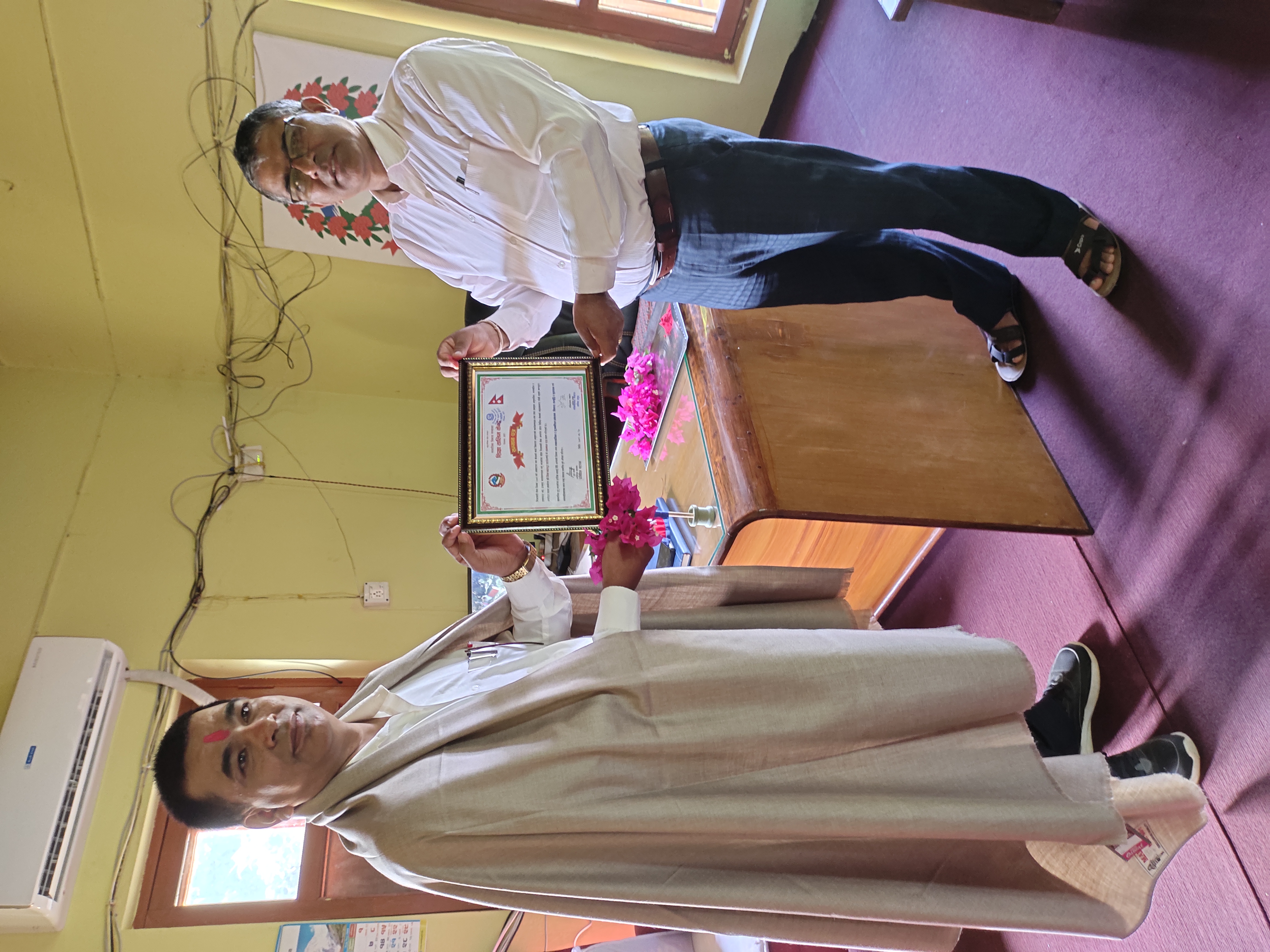 निजामती सेवा दिवस २०८१ को अवसरमा यस केन्द्रमा रहेर उत्कृष्ट कार्यसम्पादन गर्नुभएकोमा प्रदेश निजामती सेवा अन्तर्गत प्रदेश विविध सेवाको सहायकस्तर पाँचौ तहको कम्प्युटर अपरेटर पदमा कार्यरत श्री मिन बहादुर साउँद सरको सम्मान स्वरुप केही तस्विरहरु ।