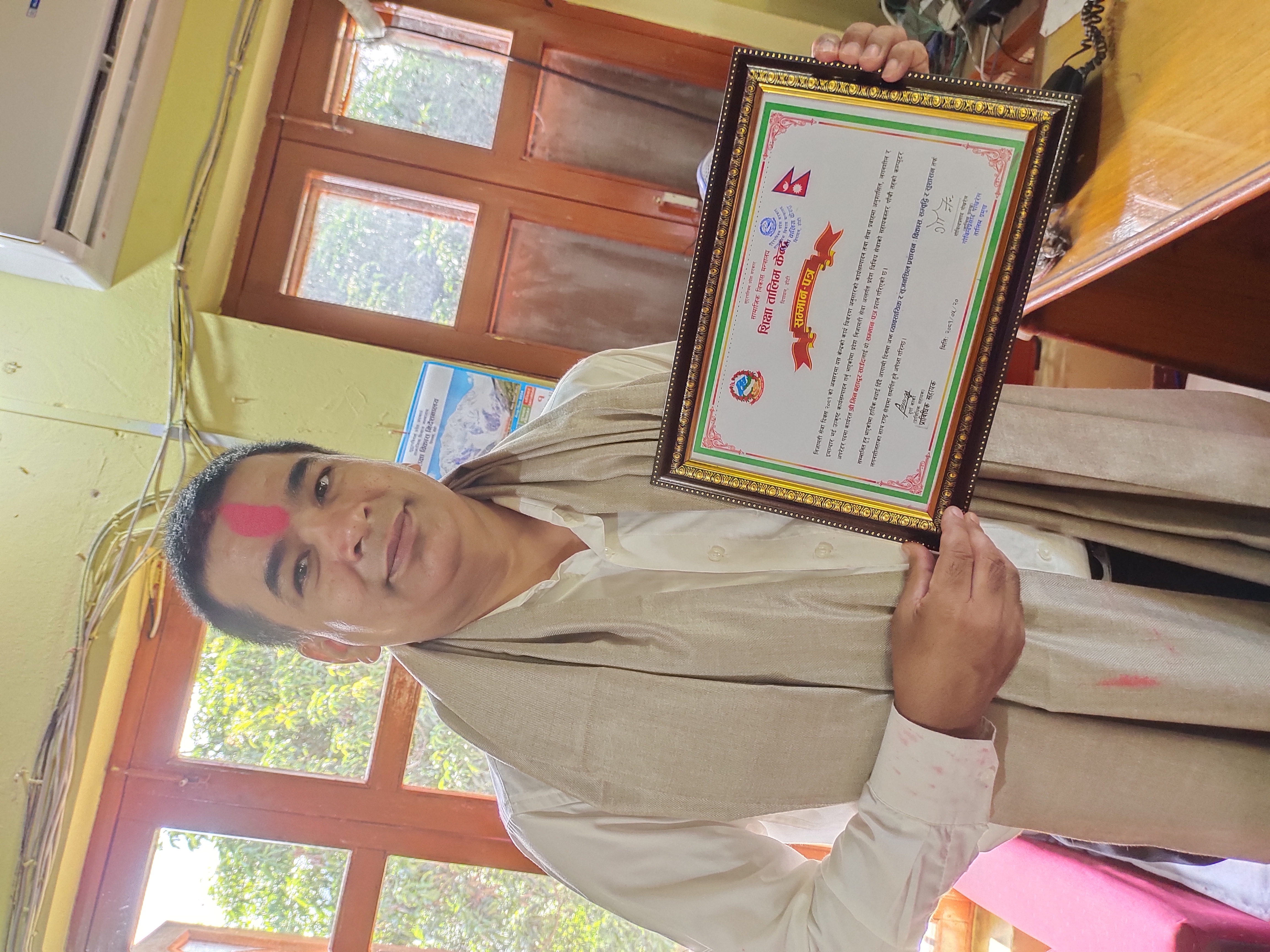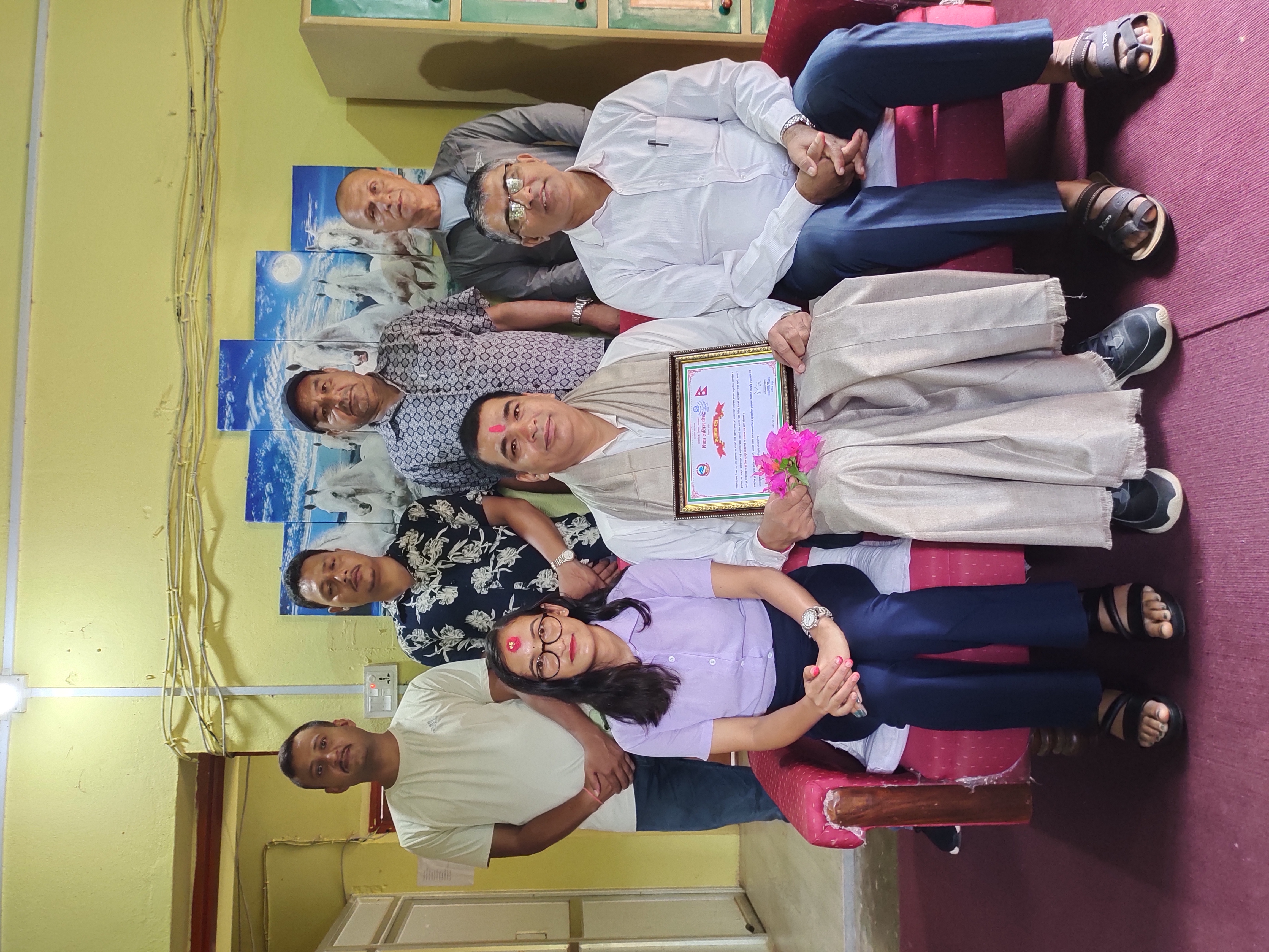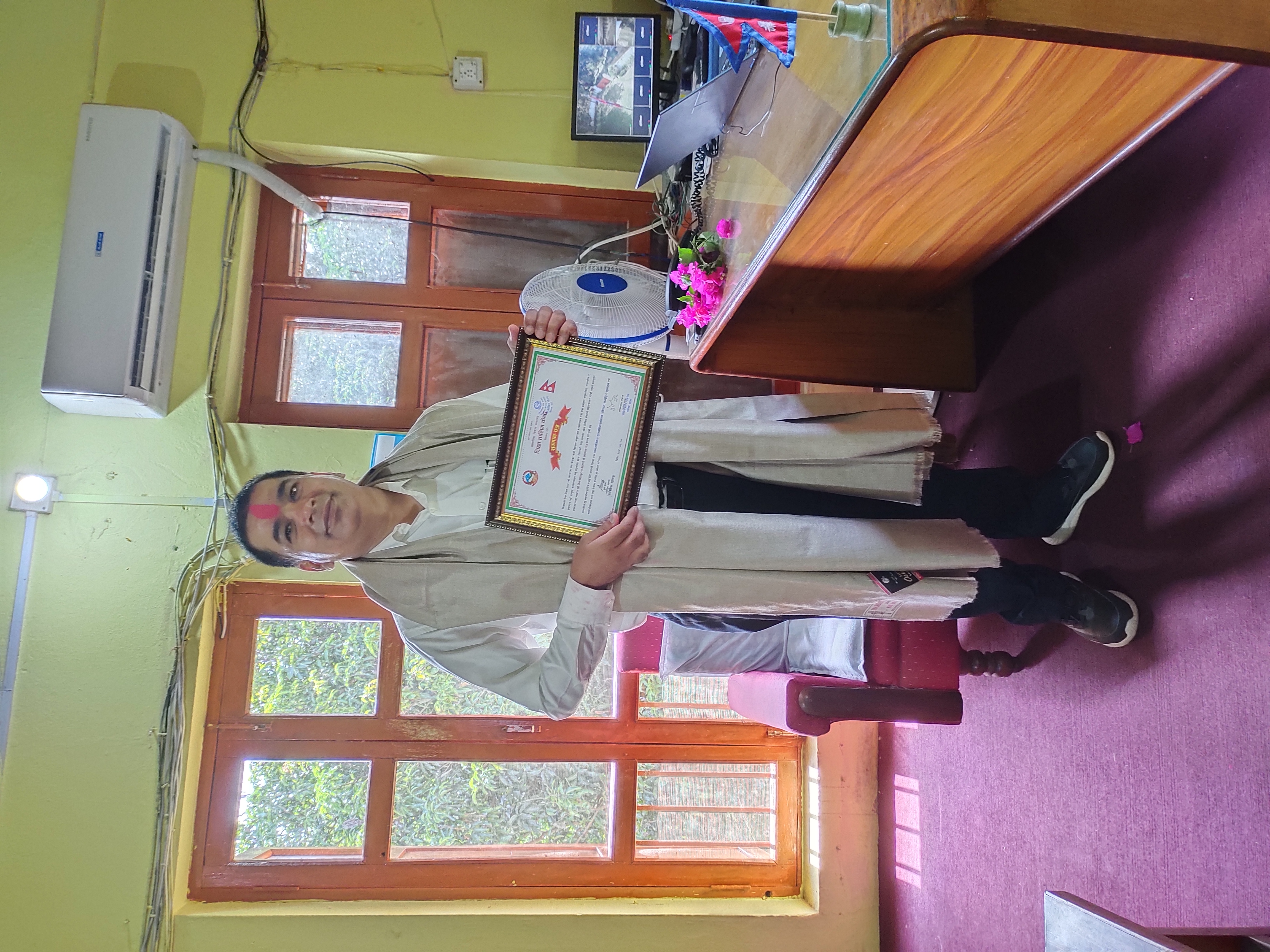 निजामती सेवा दिवस २०८१ को अवसरमा यस केन्द्रमा रहेर उत्कृष्ट कार्यसम्पादन गर्नुभएकोमा प्रदेश निजामती सेवा अन्तर्गत प्रदेश विविध सेवाको सहायकस्तर पाँचौ तहको कम्प्युटर अपरेटर पदमा कार्यरत श्री मिन बहादुर साउँद सरको सम्मान स्वरुप केही तस्विरहरु ।