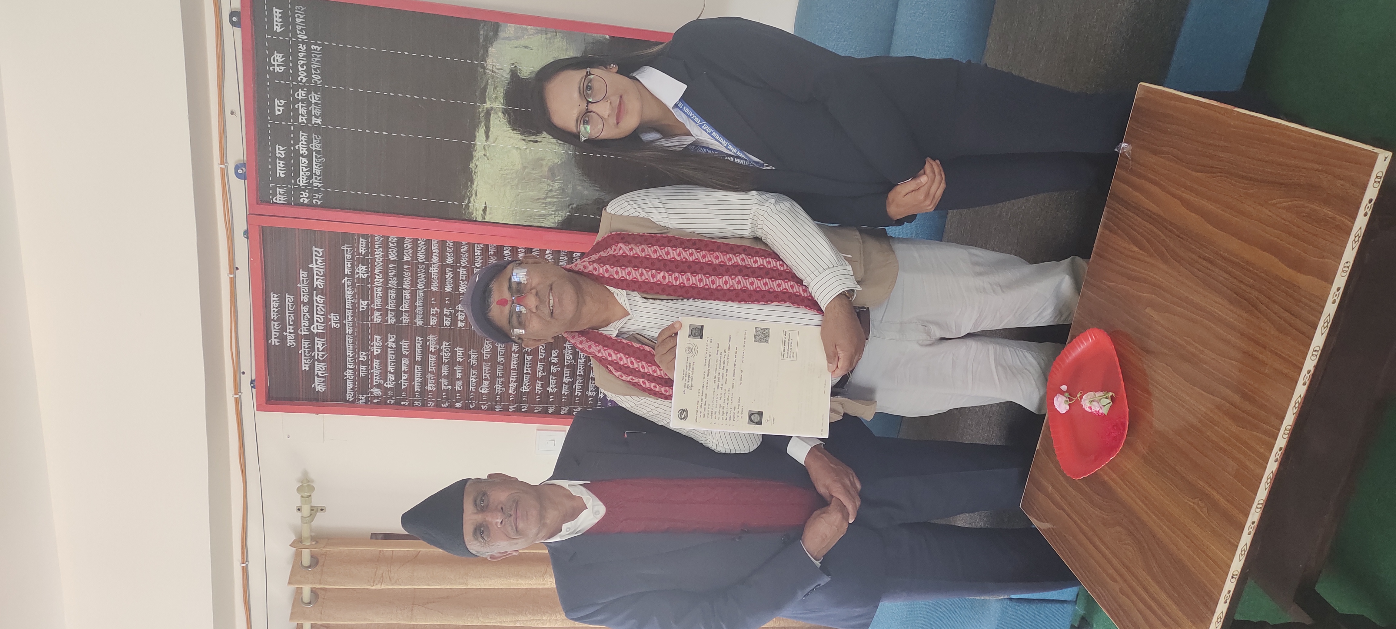 यस केन्द्रको तालिम प्रमुख पदबाट सेवा निवृत्त हुनु भएका श्रदेय सर श्री गोबिन्दप्रसाद पोखरेल ज्यू ई- पेन्सन सम्बन्धि कागजातहरु कोष तथा लेखा नियन्त्रक कार्यालय डोटीबाट ग्रहण गर्नुहुदै । (मितिः २०८२।१२।३०)